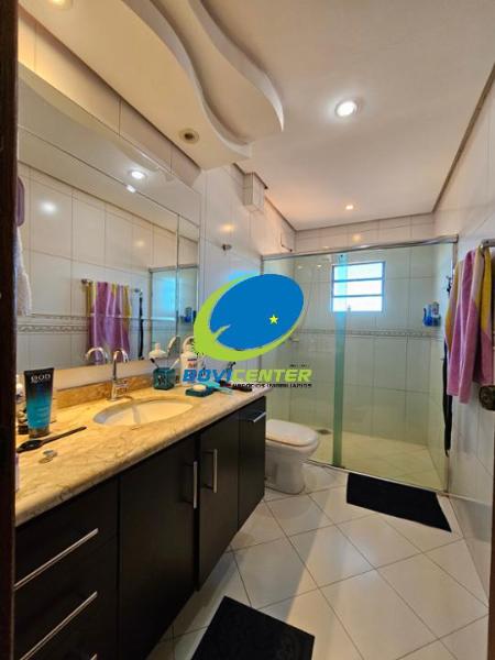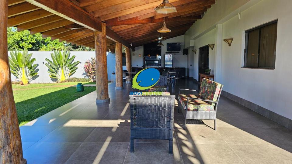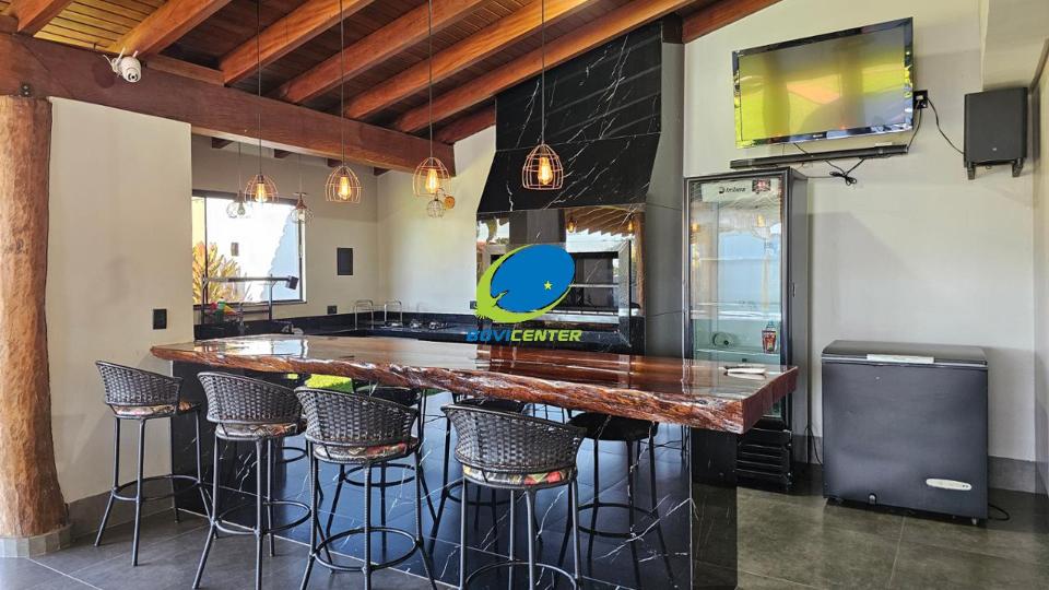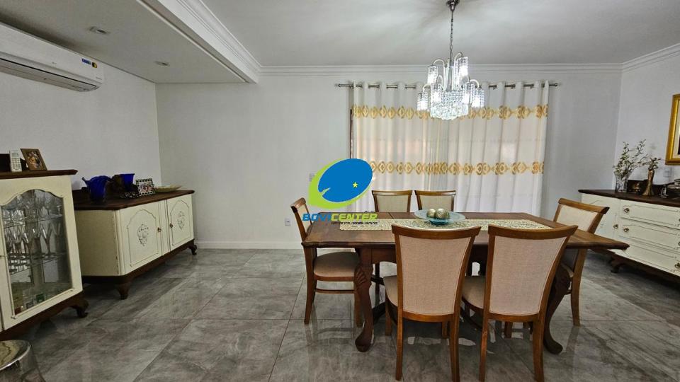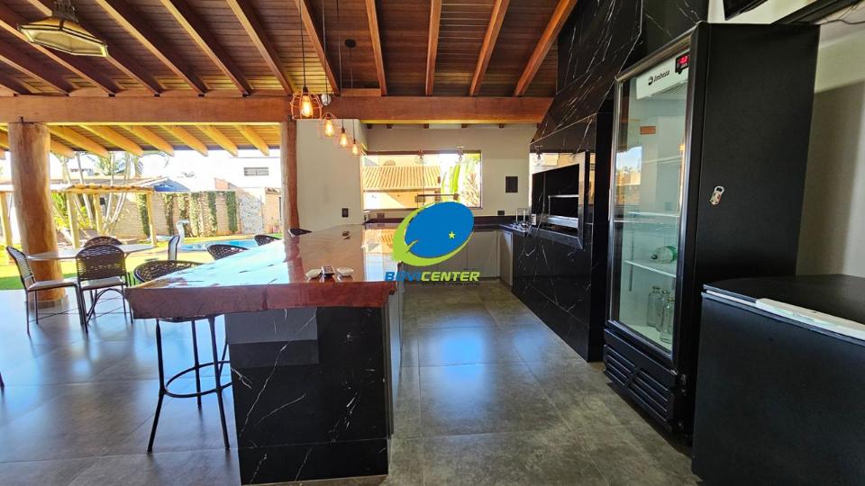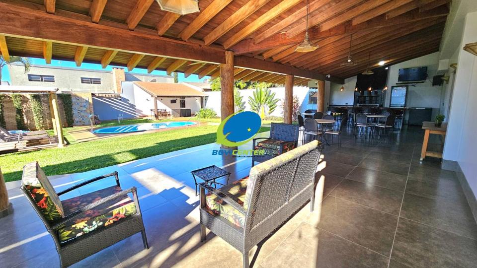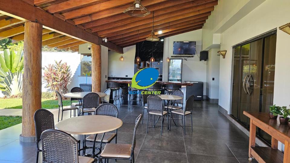 Garagem. Possui energia fotovoltaica. Espaço Gourmet com forro madeira, restante laje. Edificação 466m² .