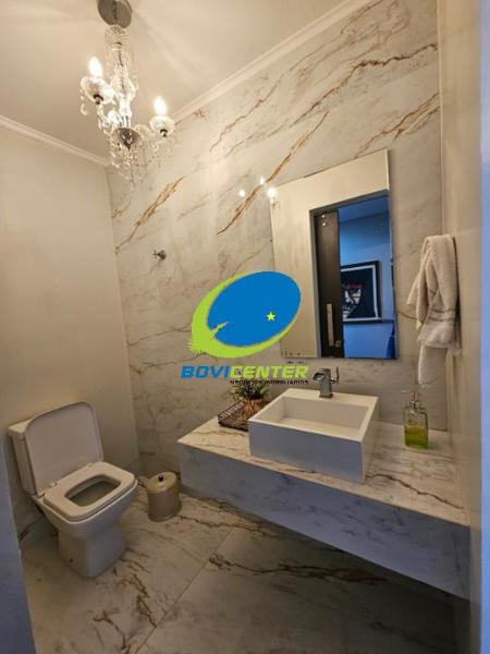 Terreo: 1 suíte, escritório, lavabo, sala estar, sala jantar, cozinha com armários planejados.