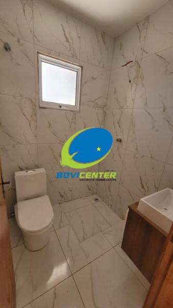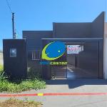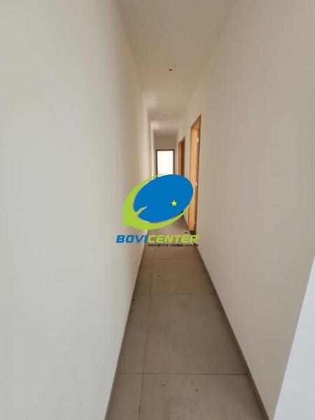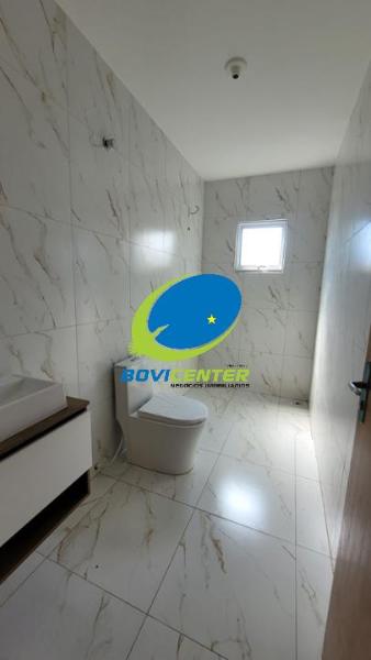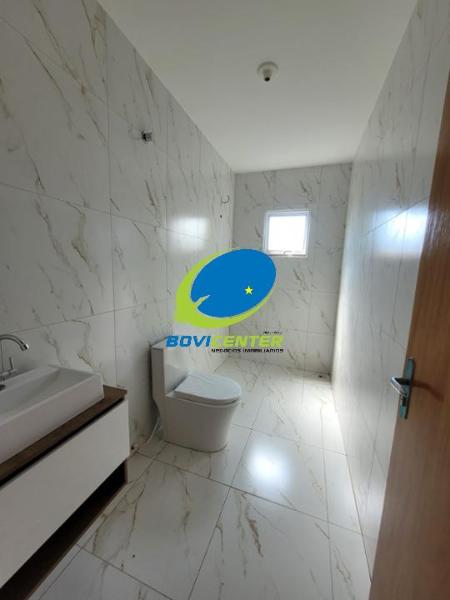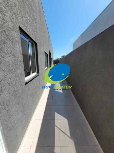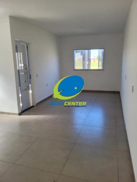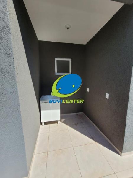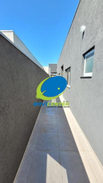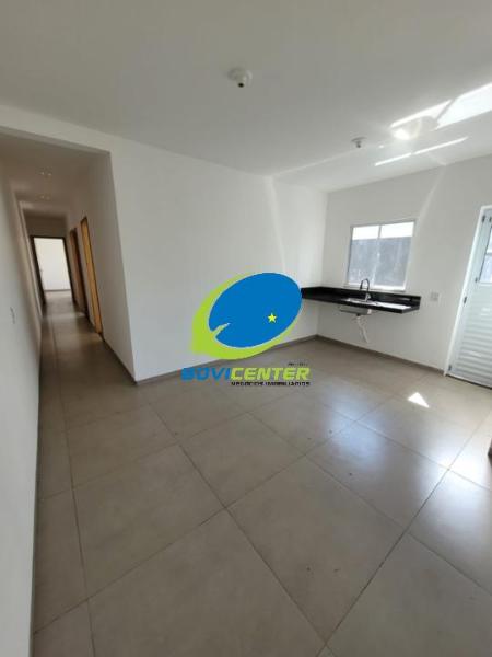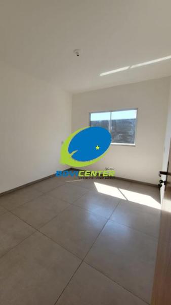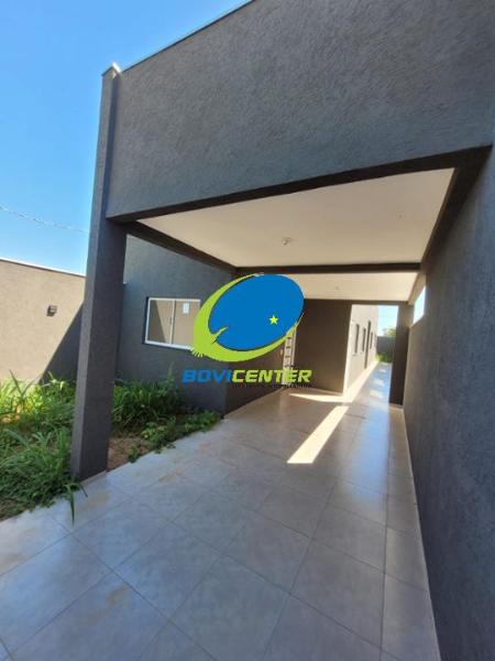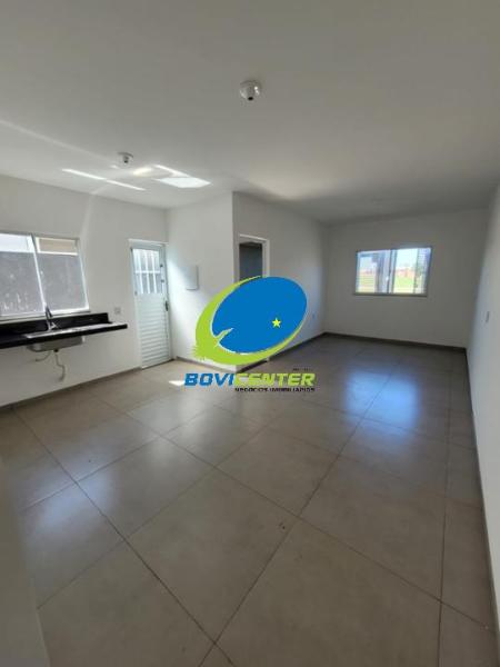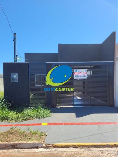 Imóvel com três dormitórios (um sendo suíte), banheiro social, sala com cozinha integrada, área de serviços, garagem.