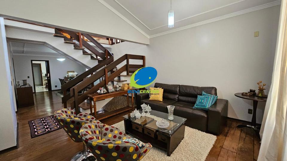Piso superior: uma suíte completa, dois dormitórios, banheiro e sala, com acesso por uma linda escada em madeira.