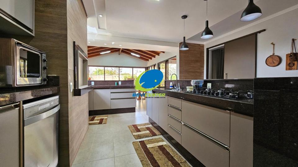 Térreo: sala dois ambientes, lavabo, escritório, cozinha, lavanderia, depósito, amplo espaço gourmet, banheiro, garagem.